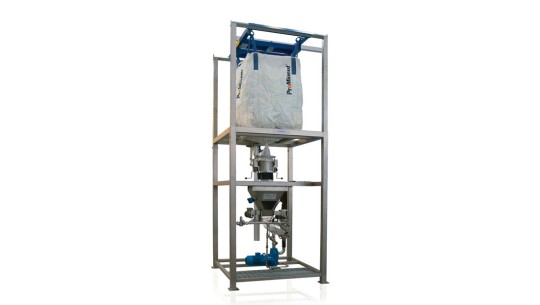 Boşaltma cihazı 1.000 kg'a kadar büyük bir torbayı tutmak ve boşaltmak için kullanılır. Big bag bir çapraz kaldırıcı yardımıyla çerçeveye asılır. 30 litrelik toz saklama kabı, tozu bir konveyöre aktarmak için kullanılır.